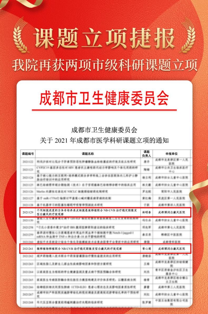 这不,经成都市卫生健康委员会对全市申报的项目进行初审和复审,成都博润2项课题从申报的661项申请项目中脱颖而出,成功立项2021 年成都市医学科研课题。
