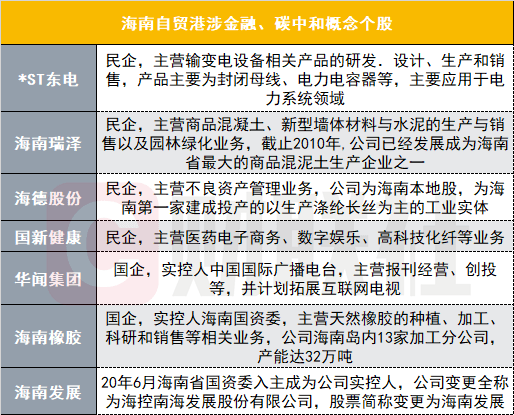 财联社梳理部分海南本地涉及碳中和、金融业务个股如下: