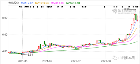 山西资本圈注意到,从2021年5月宣布更名以来,太化股份可谓一路走高,已从最初的每股4元左右涨至现在每股8元左右,成功实现翻倍,整体表现不俗。如今,在正式完成股票简称变更后,上市公司能否继续乘势而上值得关注。