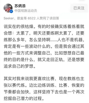 曾经就有人问奥运短跑选手苏炳添,长期坚持下去做一件事,到底累不累?枯不枯燥。