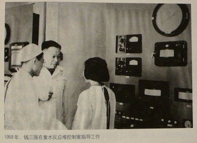 △1959年,钱三强在重水反应堆控制室指导工作