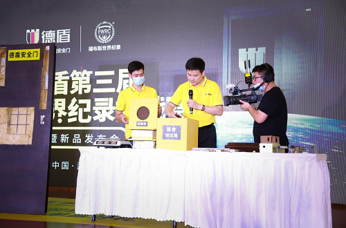本次挑战活动前,德盾直营区营销总监孙殿全就通过剖析门体进行讲解的方式,对比分析了德盾在安全性能上的强大优势。也正是由于这些在细微之处依旧一丝不苟的精工品质,才成就了德盾整体的固若金汤,才让德盾有了足够的底气与实力三创世界纪录。