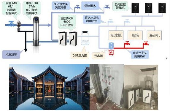 大型餐饮企业青岛即墨古城君澜酒店(☆☆☆☆☆)厨房整体净水方案: