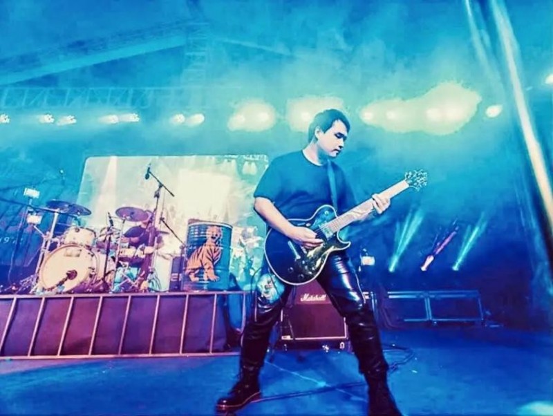 虽然浅弹有点不善言辞,但是问起他最喜欢的吉他手是谁,他会一一细数道来,不难发现他对吉他的热爱之深。 他最喜欢的吉他手是日本的指弹吉他演奏家,押尾光太郎;喜欢的乐队也有很多,比如X JAPAN、B'z、Mr.children等等,他们的音乐总能触动浅弹的情绪,抵达他内心深处。 浅弹当然也组过乐队,前两年乐队全国巡演,演了全国20多个省市。 他回忆起第一次上台演出的时候,紧张到手脚发抖,完全不受控制,甚至站不稳,仿佛被点了穴,也弹错了很多。 但或许这就是乐队live的魅力所在,大家都是极其热爱音乐的年轻人,队友们总是会互相鼓励。 所以他并未因此放弃,反而更积极地去演出,现在已经可以做到一场大型全国巡演都应对自如。