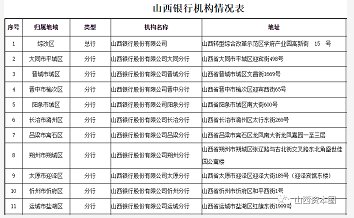 根据工商注册登记信息显示,山西银行目前10家分行均已完成注册或变更,除上文提及的阳泉分行、晋中分行外,其他分行还有大同、晋城、阳泉、长治、吕梁、朔州、太原、忻州、运城等8家分行,其中太原分行由晋中银行太原分行更名,忻州分行由原晋城银行忻州分行更名,运城分行则由原晋城银行运城分行更名,其余其余皆为新设。