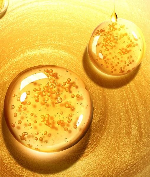 此次黄金复原蜜最令人惊艳除了高能成分外,其硬核黄金微珠更是惊喜满满。黄金微凝珠包裹着精油,运用黄金微纳米渗透科技,纳米分子级的浓萃精华液高速渗透进肌理,触肤即融,即刻爆发所有成分强大活性与修护能量,深入肌底内外修护,给予肌肤抗初老、舒缓、赋活、柔嫩等强大保养能量,重现光泽透亮新生肌。
