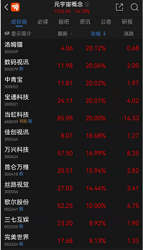 自从8月底,市场消息称字节跳动收购Pico后,“元宇宙”概念在资本市场“火爆”。9月8日,被称为“元宇宙龙头”的中青宝开盘即涨停,截至当日收盘,涨停都没有被打开,股价报11.81元/股。这已是该股第二日涨停。当日,与“元宇宙”概念相关的多只个股涨幅超10%。多家上市公司在互动平台上表示,已开始布局该领域。