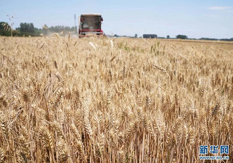联合收割机收割小麦。新华社记者 杨世尧 摄