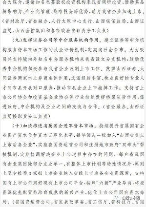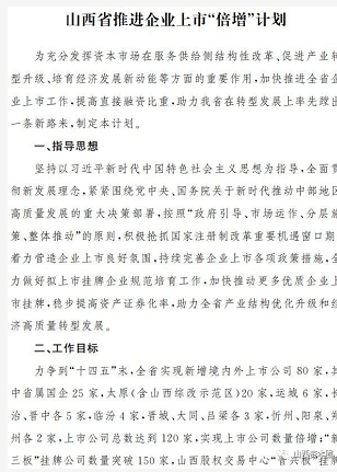 附《山西省推进企业上市“倍增”计划》和《山西省金融提振赶超行动方案》全文: