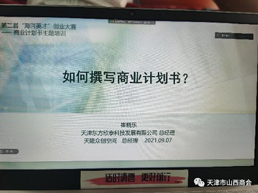 2021年8月29-30日两天,天津山西商会(中国晋商俱乐部联合发起机构)会员企业天隆众创空间总经理崔晓乐受邀作为第二届天津市“海河英才”创业大赛复赛评委,并于9月7日,在天津市就业服务中心会议室为大赛入围决赛的24个项目通过视频会议方式进行商业计划书撰写辅导,共有30余人参会,助力创新创业,推动产业发展。