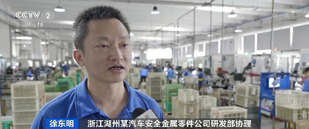 浙江湖州某汽车安全金属零件公司研发部协理徐东明:举个例子,一个十几年前承认(量产许可)的产品现在的价格可能是5元,现在新承认(量产许可)的一个产品,单价可能高达10元,所以生产一个新产品就抵了两个旧产品。