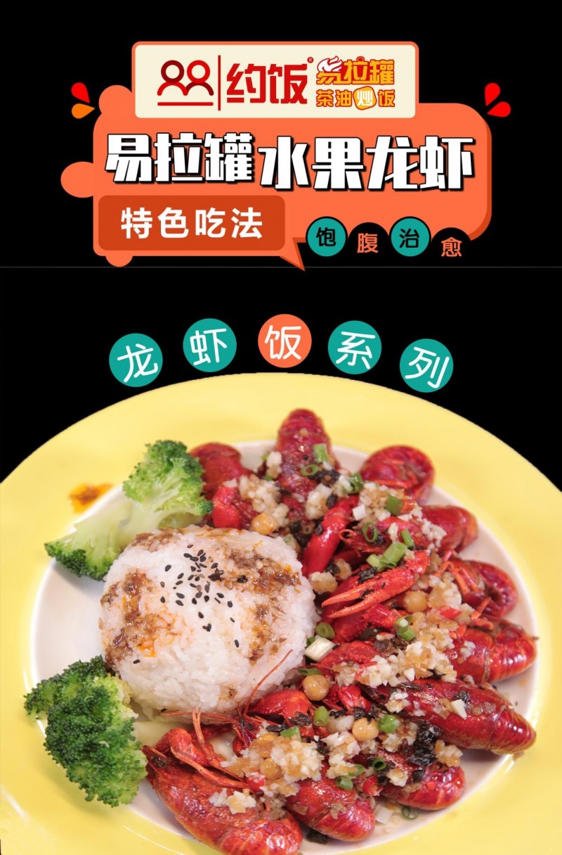 如今,小龙虾的口味不断进化,现已进化出十三香小龙虾、麻辣小龙虾、蒜香小龙虾、油焖小龙虾、白灼小龙虾乃至小龙虾月饼、小龙虾汉堡、小龙虾盖饭等等无数种类。但国人依旧没有停止探索的步伐,新锐品牌约饭大胆创新,将水果与龙虾结合在了一起。