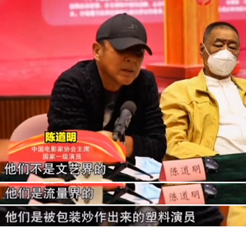 “我从来不认为这些演员是我们队伍中的人,他们不是文艺界的,他们是流量界,他们是被包装炒作出来的‘塑料演员’。”