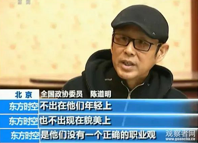 “问题不出在他们年轻上,也不出在貌美上,是他们没有一个正确的职业观。现在动不动什么手破了、哪儿摔伤了、冬天在水里头、夏天穿着打皮袄变成了一个演员的功劳。你就是干这个的,你拿的就是这份钱。他们因为长得帅被追捧没问题,但自己因此忘记了本职就错了。”