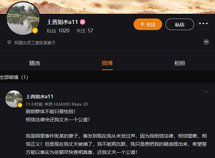 我是阿里事件张某的妻子,事发到现在我从未发过声,因为我相信法律,相信警察,相信正义!但是现在我丈夫被捕了,我不能再沉默,我只是想把我的疑虑提出来,希望警方能以事实为依据尽快查明真像,还我丈夫一个公道!