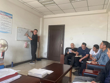 图为袁鑫正在为地测科成员进行测量基础知识的讲解