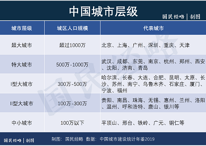 而500万到1000万之间的,为特大城市,包括成都武汉杭州等10多个强二线城市;