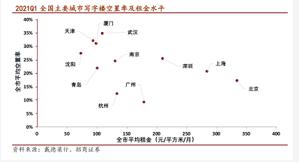数据显示,2020年以来,一二线城市写字楼空置率创下新高,除了广州等个别城市外,大多数一二线城市空置率都在20%以上。