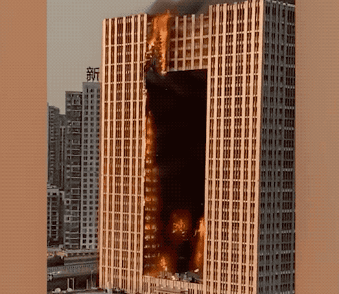 大连金普新区凯旋国际大厦突发火灾