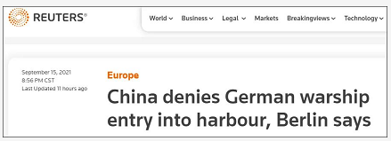 据路透社报道,德国外交部发言人9月15日表示,中国已拒绝让德国“巴伐利亚”号护卫舰停靠中国港口。