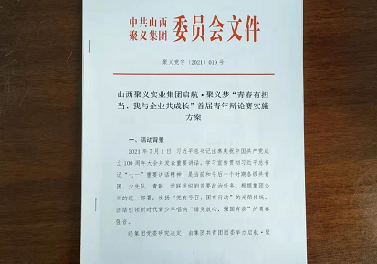 集团共青团总支书记宋俊宣读了《山西聚义实业集团共青团团委 “启航·聚义梦青春有担当、我与企业共成长”首届青年辩论赛实施方案》。重点强调了本次辩论赛的实施细则。各团支部书记认真听取了辩论赛实施方案。