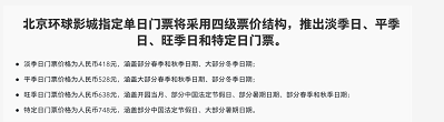 北京环球影城门票价格 来源 / 北京环球度假区官网
