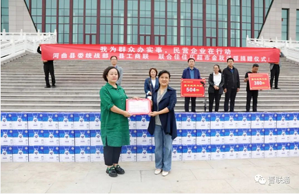 9月18日,河曲县委统战部、县工商联携手佳佳乐综合超市举行“我为群众办实事 民营企业在行动”金秋送暖捐赠活动。县委常委、宣传部部长、统战部部长丁国妍出席并讲话。县工商联主要领导参加捐赠仪式。
