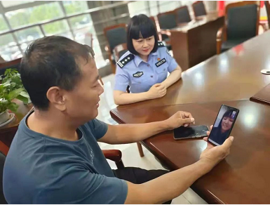 2021年中秋前夕,赵紫雯的生父和正在积极治疗的女儿视频通话。宿州市公安局供图。