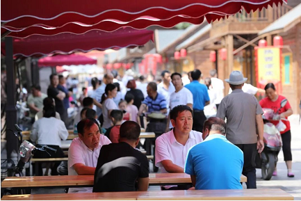 特色小吃、传统作坊、乡土工艺小店引人驻足,欢笑声、叫卖声不时传来……太行山下,秋色旖旎,沿着青石板路走走停停,振兴村“上党印象步行街”惬意休闲的假日气氛扑面而来。
