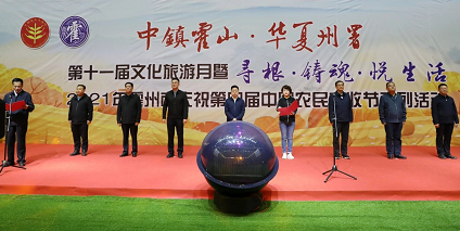 在丰收喜庆的季节,9月22日,“中镇霍山·华夏州署”第十一届文化旅游月暨“寻根·铸魂·悦生活”2021年霍州市庆祝第四届中国农民丰收节在全民健身中心隆重开幕。旨在庆丰收,激发全市农民的创业激情,助推我市农业现代化和乡村振兴高质量发展;旨在兴文旅,推介霍州文旅品牌,助推霍州扩大开放、转型发展,为全面振兴霍州经济凝聚磅礴力量。