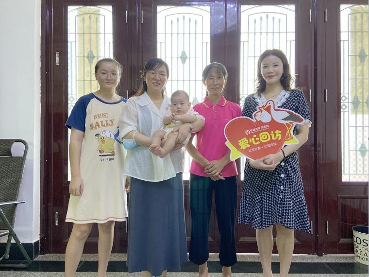 翁女士一家人是虔诚的基督教信徒,招待客人也都是温文尔雅。工作人员抵达后,翁女士的婆婆还特意切了水果热情招呼。看着宝妈怀里4个半月大的宝宝,主治医生唐主任接到自己手中,感慨道:“孩子长得真快,你看这宝宝多白,多像妈妈。”一旁的翁女士感激地说:“感谢送子鸟给了我做妈妈的机会,感谢唐医生给了我一个完整的家!”