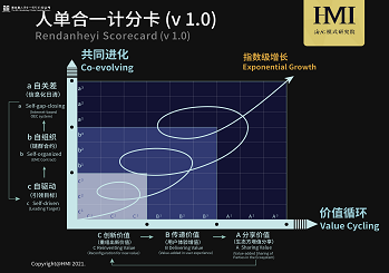 欧洲管理发展基金会推出的人单合一认证是以人单合一的计分卡为蓝本。人单合一计分卡的纵轴和横轴是两个循环: