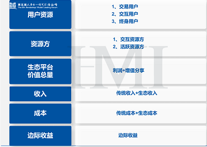 更重要的是第三个——生态价值,传统三张表里没有生态价值,只有产品价值。生态价值需要的就是场景和生态。