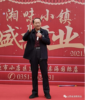 山西省湖南商会名誉会长、山西省军区原副司令员何永才将军致辞:太原第五家湘味小镇的开业,标志着他们用湖南人的精神、湖南人的文化,在山西打造了一个良好的餐饮企业,得到了山西人民及全国人民的认可,这就是湖湘文化的精益求精,吃得苦、霸得蛮、耐得烦,把餐饮事业越做越好,在美好的三晋大地更好地服务于山西人民,为湖南人在山西争光。