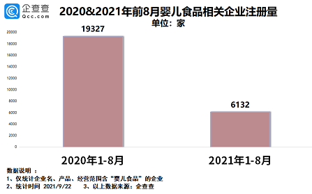 从今年的注册量来看,2021年1-8月,我国婴儿食品相关企业注册量为0.6万家,同比下跌了68.3%。从前8月的注册趋势来看,今年我国婴儿食品企业注册量将呈下跌趋势。