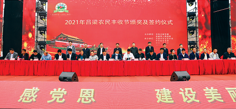 图为 2021年吕梁农民丰收节颁奖及签约仪式现场。