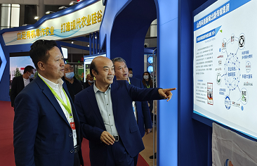 ▲山西省科协党组成员、副主席郝建新同相关专家参观农交会山西科技传媒集团展位