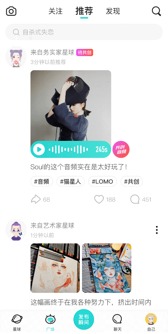 Soul为了鼓励平台优质的创作者,还打造了“SSR”称号。Soul 让有才华、热爱生活的年轻人勇敢表达、展示自我,传递Z世代有趣、多元、温暖、真实的社交面貌,通过圈层社交引导正向价值观。