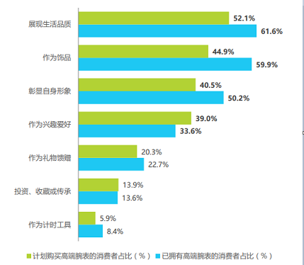 《2019中国高端腕表消费者购买目的分布》,数据来源于艾瑞咨询网