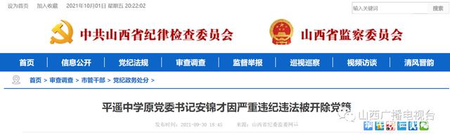 日前,晋中市纪委监委对平遥中学原党委书记、平遥古城旅联实业有限公司(平遥中学参股企业)原董事长安锦才严重违纪违法问题进行了立案审查调查。