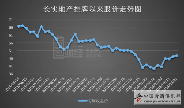 自2015年6月份完成重组,长实地产在香港主板挂牌以来,其股价已经大幅下挫。2016年1月创下38.2港元的历史新低,较2015年6月最高时的77.55港元,已经腰斩。2016年前两个月长实的股价一直徘徊在40港币左右,3月份开始逐渐回升。