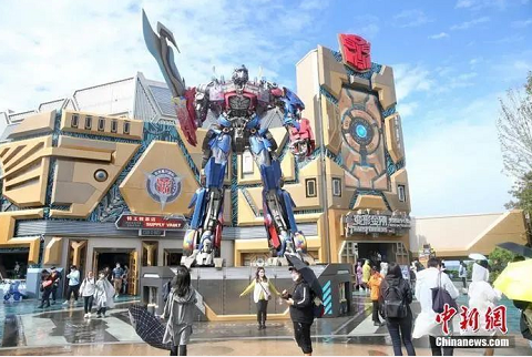 资料图:游客在北京环球影城变形金刚主题区内游览。中新社记者 易海菲 摄