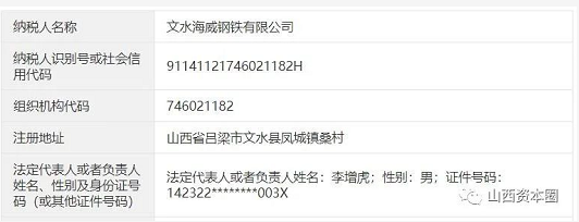 资料显示,李增虎发家于1985年创立的炼铁厂,后于2003年注册成立文水海威钢铁,这也是其最重要的资产,亦曾是山西省重点民营钢铁企业。。而作为当地最大钢企和龙头企业,海威钢铁是文水县财政税收的重要来源,据传文水县坊间广为流传着一句话——“世界是美国的,文水是海威的”,足见当时海威之于文水县的重要性。