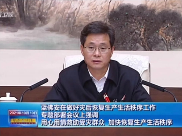 10月9日,山西省省长蓝佛安主持召开了“做好灾后恢复生产生活秩序工作专题部署会议”。