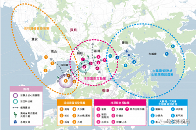 在《施政报告》中,多次强调了“双城三圈”的概念。“双城”是香港和深圳,“三圈”即深圳湾优质发展圈、港深紧密互动圈和大鹏湾/印洲塘生态康乐旅游圈。
