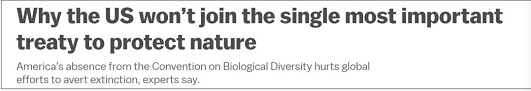 尽管专家们在美国未来是否会“加群”的问题上存在争议,但他们一致同意的是,由于美国的缺席,这个“有着巨大环境足迹”的国家正阻碍着全球在生物多样性保护上的努力。
