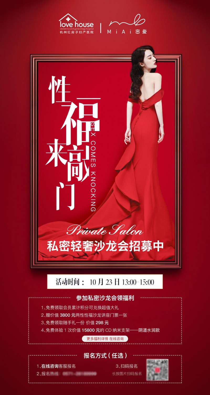 凡在红房子消费过凭消费单,可在10月23日统一到院领取会员积分兑换超值大礼,并赠送一张价值3800元两性性福 沙龙讲座门票一张.