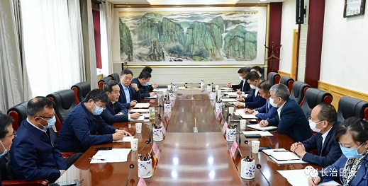 近日,长治市委副书记、代市长陈耳东与杭州聚合顺新材料股份有限公司董事长傅昌宝一行举行工作会谈,就进一步深化交流合作进行沟通对接。市政府秘书长桑利刚及潞城区、市直有关部门、潞宝集团主要负责人参加。