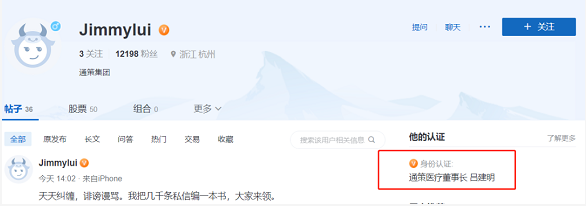 炸锅了!10月17日,经平台认证为通策医疗董事长吕建明的用户“Jimmylui”,在雪球上与粉丝公开对骂,火力全开还称:“他们买我们的股票是我们的耻辱”。