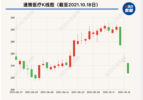 10月14日、15日,有着“牙茅”之称的通策医疗突遭两个跌停。尤其是在10月14日,通策医疗股价猝不及防大跌,在早盘开盘后就迅速下跌,在10时32分时跌停。而通策医疗也正是在10月14日晚间发布前三季度业绩公告。